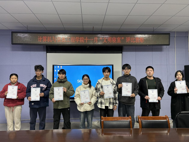 为全面推进文明校园建设,强化学生宿舍文明素养培育,11 月 19 日下午,计算机与信息工程学院组织开展 “文明寝室” 评比活动,引导学生从宿舍生活细节践行文明规范,以 “小环境” 涵养 “大品行”。宿舍作为学生在校生活的核心阵地,是文明养成教育的重要载体。本次活动紧扣学校文明养成教育中“宿舍文明”“讲究卫生习惯”“遵守秩序习惯” 等核心要求,以 “整理一方天地,涵养一身品行” 为理念,推动学生将文明素养内化于心、外化于行。活动中,同学们积极响应“弯腰行动” 倡导,共同清理宿舍卫生死角,规范物品收纳摆放;在协作整理中强化尊重他人、分工协作的意识,让诚实守信、勤俭节约的习惯在日常相处中扎根,既增进了室友间的情感联结,更让规则意识与文明素养在细节中落地生根。