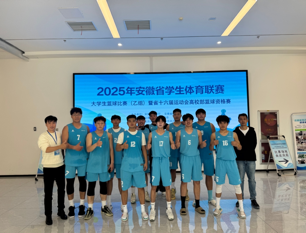 2025年11月7日至13日,由省教育厅、省体育局联合主办,安庆师范大学与安庆医药高等专科学校共同承办的2025年安徽省学生体育联赛大学生篮球比赛(男子乙组)在安庆顺利收官。我校男子篮球队首次参加省级赛事,便凭借过硬的技战术水平和顽强的拼搏精神,从全省26支参赛劲旅中成功突围,顺利小组出线并跻身十六强,为学校赢得了宝贵荣誉。