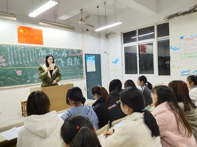 本网讯 为了促进大学生身心健康发展,让广大学生树立关爱自我的意识,增进学生对自我的了解和认识,营造人人关心心理健康的良好氛围,食品工程系组织各班级于11月21日晚开展了“敞开心扉,探索自我”为主题的心理健康月主题班会。